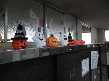 給食のサービスホールも季節を感じられるように模様替えしました。