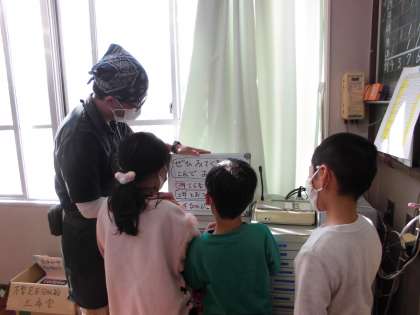 昨日に引き続き、「北上支部みんなでワイワイ運動会」について、仲よし学級で作成した動画を全校のみんなに見てもらうために、放送でアナウンスしました。