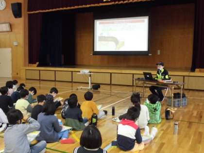 今日は、北区役所地域推進室の方に来ていただいて、地震の種類のことや学校に置いてある避難グッズ等についてお話していただきました。京都でも30年以内に地震が起こる確率が70〜80%あることを知り、子どもたちはとても驚いていました。これから「おおとりタイム」で防災について学習を深めていきます。
