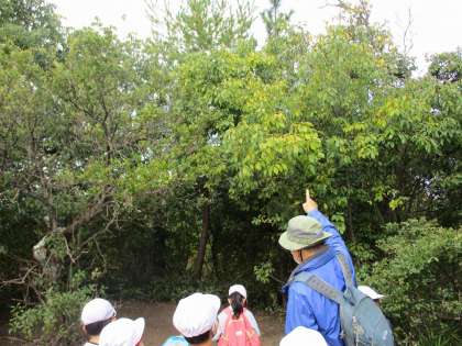 船岡山には、いろいろな種類のどんぐりがあります。どんぐりは、船岡山にいる動物の大切な食べ物なので、たくさんとってはいけないことを教えてもらいました。