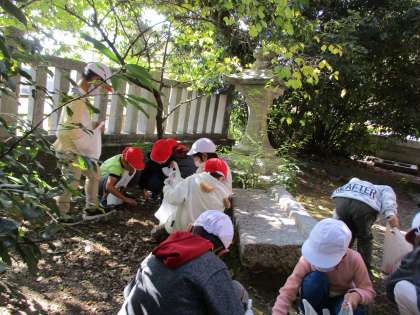 前回、船岡山公園に行った際に、秋博士にどんぐりの種類を教えてもらっていたので、子どもたちは、「これは、食べられるどんぐりじゃないね。」「このどんぐりと、こっちのどんぐりは、種類が違いそうだね。」などと言いながら、楽しそうにどんぐり拾いをしていました。