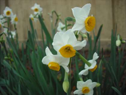 運動場西側の植込みの水仙が花を咲かせています。つぼみもいっぱいついています。これからが水仙の本番です。