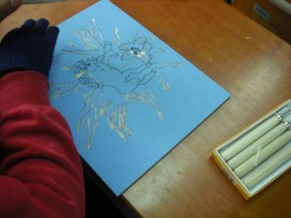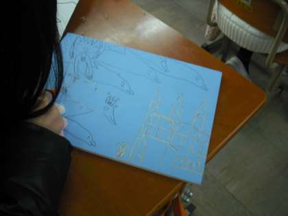 4年生は木版画に挑戦です。彫刻刀も初めて使います。使い方をしっかり学習してから彫っていきます。けがをしないように正しく使いましょう。どんな世界へ行けるかな?