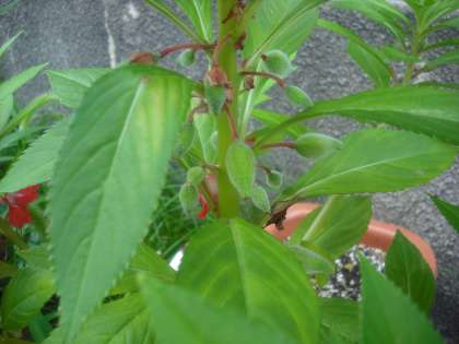 3年生が観察している「ホウセンカ」。花が終わった後に実が膨らんできました。種はいつはじけるのでしょう。楽しみですね。