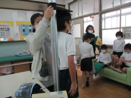 3学期ということで、保健室へ入る時の靴の揃え方、挨拶の仕方、計測時の姿勢など、大事なポイントもしっかり気をつけることができていました。