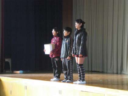 今日から後期後半がスタートしました。1校時に年頭の朝会がありました。校長先生から年賀の挨拶の後,年が改まることを祝う意味や後期後半の過ごし方などについてのお話がありました。引き続き,6年生から総合学習に絡めて募金活動を行うことの決意表明がありました。明日から3日間登校時に6年生が校門に立ちます。みなさん,どうぞよろしくお願いします。
