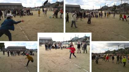 運動場で、ドッチビーに汗しました。