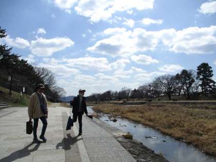 賀茂川の河川敷はポカポカ陽気で、「春やなぁ」とうれしそうな子どもたち。