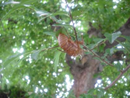 プールからあがってきた1年生の「セミ!セミ!」の声。セミの抜け殻とセミを見つけて大声を出していました。セミの幼虫の出てきた穴も見つけました。