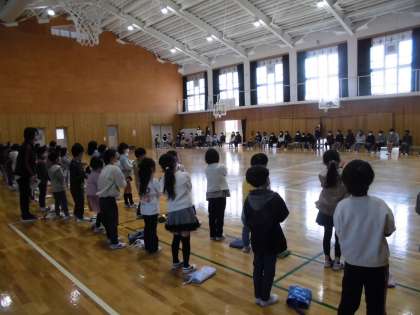 「練習時間がバッティングした?」と思った瞬間、「6年生のみなさん。ご卒業おめでとうございます。」の声が、体育館に響きました。