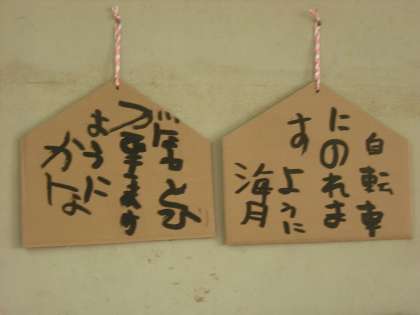 昨日,初詣に行った今宮神社にあったような絵馬に願い事を書きました。願いがかなうようにがんばろうね。