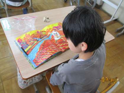これが聞こえると、自然と教室の後ろにある学級文庫に向かう子どもたち。