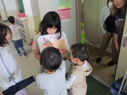 仲よし 笑顔であいさつ