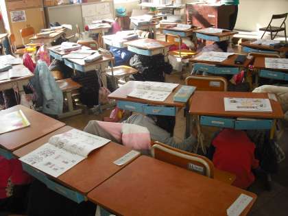 今年は,阪神淡路大震災から17年目の年です。また,東日本大震災から10ヶ月がたちました。今日の避難訓練では,地震が起こったときの1次避難や,火災が起こり運動場へ出てくる2次避難を行いました。京都はあまり地震が起きないと思っている子どもが多くいます。昔には京都市でもたくさんの方が亡くなるという地震が起きています。いざという時に「自分の命は自分で守る」ことができるように,普段からしっかりと考えておいてほしいと思っています。また,ご家庭でも,いろいろな場面を想定して,いざという時に備えて,ルールを決めておきましょう。