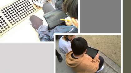 まずは教室で記録の仕方を学習。その後、GIGA端末を持って運動場へ行きました。今日は午前も午後も曇り空。それでも、雲が風に流れる様子を観察することができました。