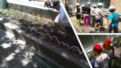 毎年お世話になっている地域のゲストティーチャーに今年もお世話になり、野菜の苗を植えました。
