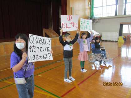 お互いの学校のことをよく知るために、各校で準備した3択クイズも、とっても上手に発表ができて、みんなで盛り上がって楽しむことができました。