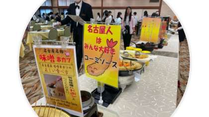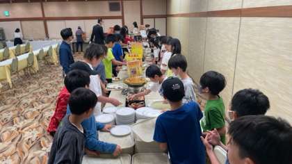 2日目の朝食は名古屋名物のバイキングです。子どもたち、喜んでいます。