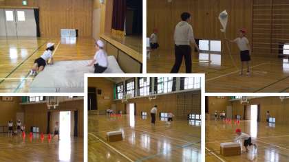 体育館でコースをつくり、元気よくコースを回りました。とても楽しそうに体を動かしていました。