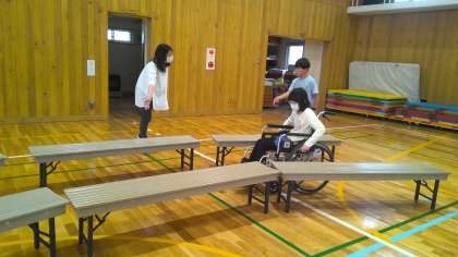 クラスごとに車いす体験をしたり、リモートでNPO法人ALIZEの方にお話を伺ったりしました。