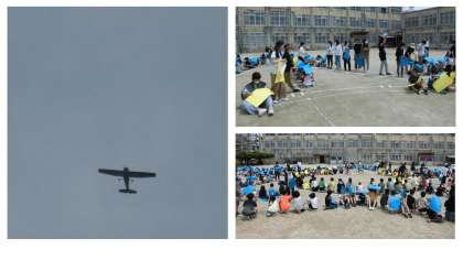 梅雨の合間を縫って、航空写真及び、学校・学年写真を撮影しました。