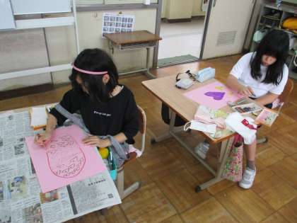 図工の学習で、それぞれが思い思いの模様のタマゴを描き、それが割れたら何が出てくるかな・・・と想像を膨らませて、作品作りをしました。