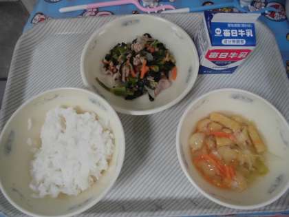 豚肉と小松菜・人参・玉ねぎ・しょうがをいため、暑い季節に食べやすいように、梅干しを使って味つけしました。