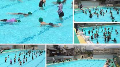 とてもいい天気の中、1回目の水泳学習を行うことができました。