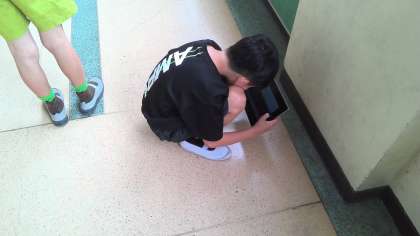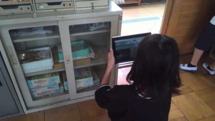 算数科「垂直・平行と四角形」の学習で、垂直と平行について学びました。学習の最後には、教室や廊下で垂直と平行の場所はどこかを探す活動を行い、撮った写真をみんなで交流しました。