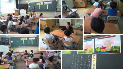 今日は、「ぞうさんと おともだち」というお話を通して、友情・信頼について考えました。元気いっぱい手を挙げたり、ペアトークをしたりして、意欲的に学習に向かえていました。