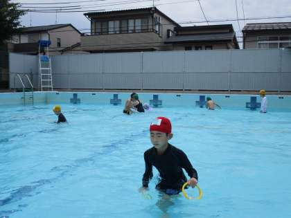 いつもより深いプールに子どもたちは大喜び。