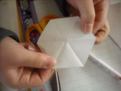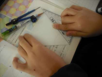 実際に紙を折って図形を作り,どんな形であるかを調べ,調べたことを基に,作った図形の特徴をとらえています。