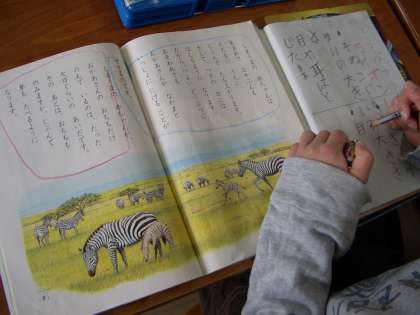ライオンとシマウマの赤ちゃんの「生まれたばかりのようす」や「大きくなっていく様子」を読み比べていきます。