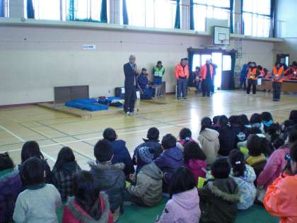第一回待鳳子ども防災EXPOが開催されました。「災害時に知っておきたい知識があります。災害時に活かせる技術があります。親子で家族で体験しながら一緒に学びませんか。」をテーマに,子どもたちに災害時の対処の仕方や平素の心構えなどを,各ブースで体験を交えながら学んでもらいます。EXPO開始に先立ち開会式が行われました。