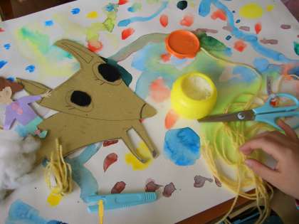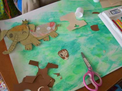 乗ってみたい動物などがだんだんと仕上がってきています。これから,いろいろなものをつけたり張ったりして仕上げていきます。