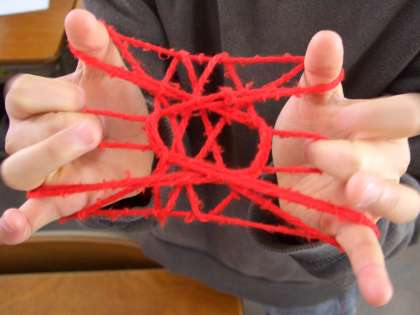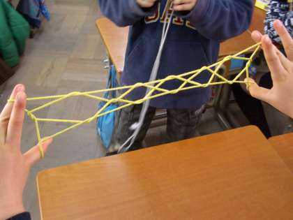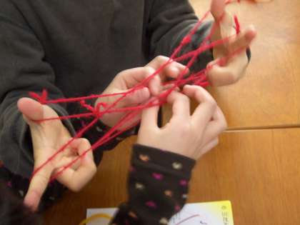 2年生があやとりに夢中になっています。お家の人に教えてもらったり,本で調べたりしていろいろなものを作れるようになってきました。2人であやとりをしているお友だちもいます。