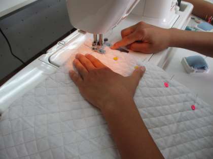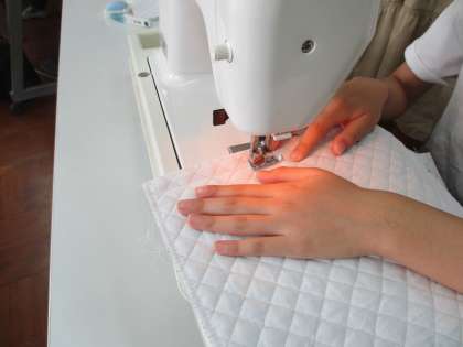 家庭科学習で「トートバック」をミシンを使って作っています。今日は両脇を友達と教えあいながら縫っていきました。出来上がりが楽しみです。