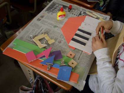 だんだんと形ができあがってきました。いろいろな仕組みも考えて作っている子もいます。でも,まだ何に使われるのか本人しかわかりません。できあがってお家で使うのが楽しみですね。図工展に出品されます。楽しみにしていてください。