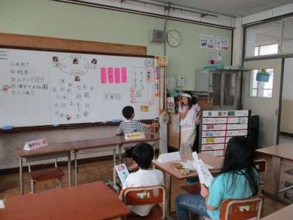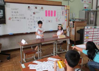 この日の国語は、交流学習の関係で、中・高学年の子どもたちで行いました。