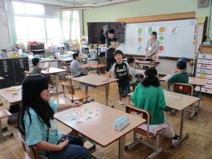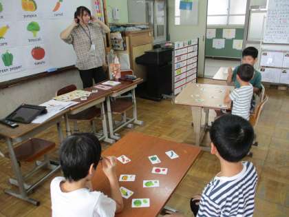 身近な野菜について、英語での表現を聞いたり真似したりして慣れた後は、野菜カードでカルタゲーム。