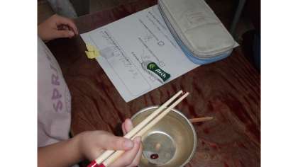 今日は、栄養教諭による「食の指導」がありました。2年生は、おはしの正しい持ち方や使い方を学習し、大豆や小豆などをおはしを使ってつまむ体験をしました。上手くつまめると、うれしそうに報告していました。