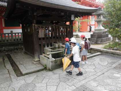 生活科の学習で、今宮神社の方にインタビューをさせていただきました。考えた質問を一生懸命伝えることができました。普段は聞けないようなお話をたくさん聞くことができました。