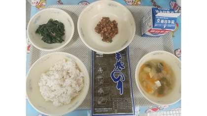 「肉みそ納豆」に使われている納豆は、日本の伝統的な発酵食品で、蒸した大豆に「納豆菌」を混ぜて作ります。納豆菌には、血をサラサラにした、おなかの調子を整えたりするはたらきがあります。
