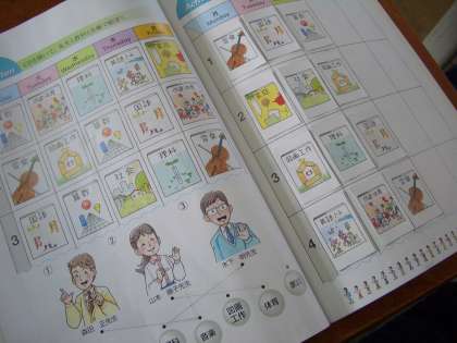 今日の外国語活動はグループで話し合って夢の時間割を作ります。曜日や教科の英語の言い方を意識して作っていきます。オリジナル強化を作っているグループもあります。