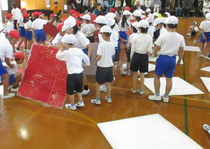 今年度の会場校である上賀茂小学校の子どもたちと一緒に、力を合わせて演技や競技をしながら、交流を深めます。