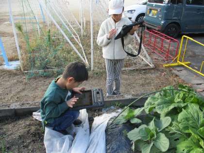 白菜がとっても大きくなっていることに驚いたり、小さなほうれん草の葉が、思っていたより細長くて意外だったりと、いろいろと発見があったようです。