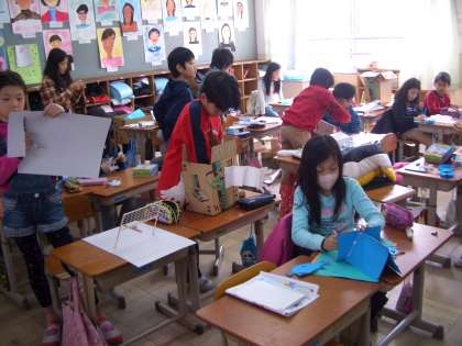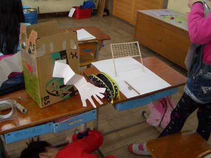 磁石の性質を利用したかんたんなおもちゃを作っています。さて,どんなおもちゃが出来上がるでしょう。楽しみだね。