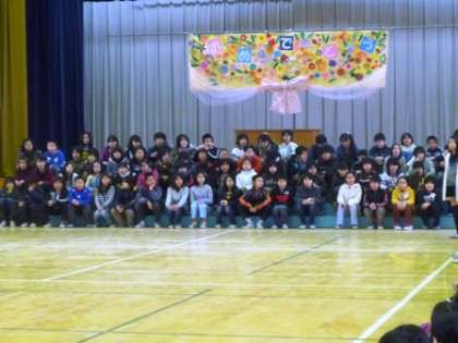 今日,全校児童と教職員で,6年生を送る会を行いました。4年生の子どもたちが作ってくれた素敵なタペストリーが壇上に飾られ,その前に,一人ずつ自分の夢を語って入場した6年生が勢ぞろいしました。