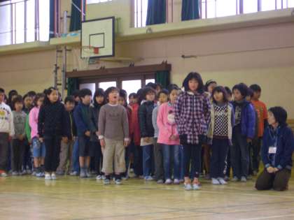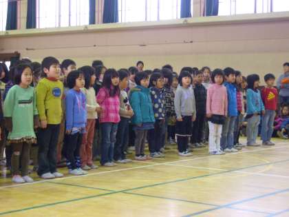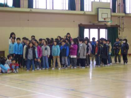 各学年からお世話になった6年生にお祝いのメッセージや歌を送ります。