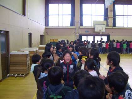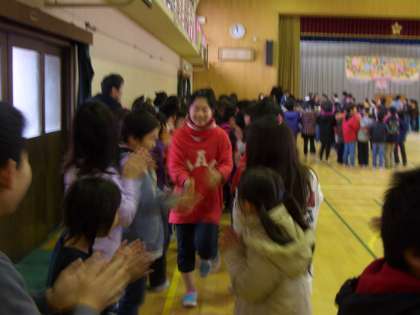 終わりの言葉のあと,6年生の退場です。1〜5年生が両側に並んで拍手をする中,退場していきます。全校が6年生の卒業をお祝いし,感動するあたたかい会になりました。